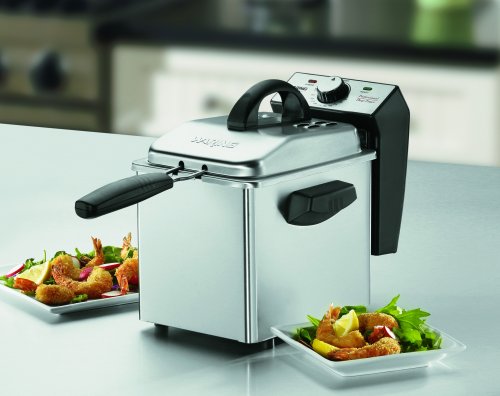 - Stainless-steel deep fryer with 1-2/7-pound food capacity- 1500-watt immersion-style heating element for fast results