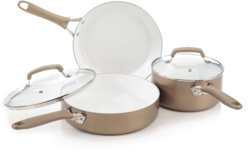WearEver C944S564 Pure Living Nonstick Scratch Resistant Ceramic Coating PTFE-Free and PFOA-Free Dishwasher Safe 5-Piece Cookware Set, Champagne Gold Review