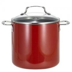 Ingrid Hoffmann Stock Pot 8 qt. aluminum constrution non-stick interior non-stick exterior decorated even heat base dishwasher safe. comes with tempered vented glass cover